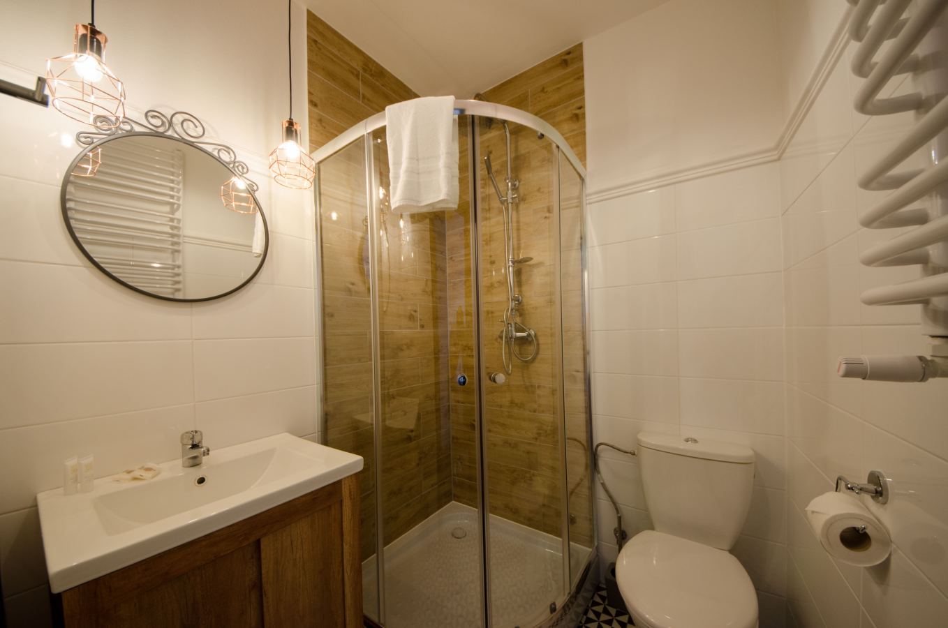prywatna łazienka /  bezpłatne WiFi /  zestaw do parzenia kawy i herbaty /  prysznic /  telewizor /  klimatyzacja /  suszarka do włosów /  żelazko /  sprzęt do prasowania /  bezpłatny zestaw kosmetyków /  prywatna łazienka /  kanały satelitarne /  kanały kablowe /  wanna lub prysznic /  telewizor z płaskim ekranem /  drewniana podłoga lub parkiet /  budzenie na życzenie /  czajnik elektryczny /  środki czystości /  ręczniki /  pościel /  krzesełko dla dzieci /  dojście na wyższe piętra tylko schodami /  wieszak na ubrania /  papier toaletowy /